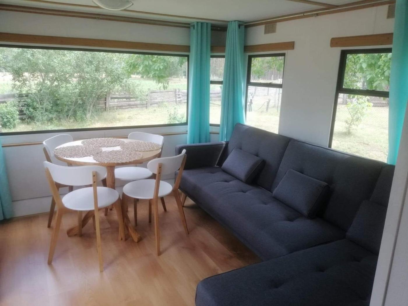 Domek holenderski. This mobile homes special feature is the private pool. Featuring a private entrance, this mobile home comprises 1 living room, 2 separate bedrooms and 1 bathroom with a shower and a hairdryer. Guests will find a stovetop, a refrigerator, kitchenware and an oven in the kitchen. The mobile home also provides guests with a barbecue. There is a washing machine, a seating area and an outdoor dining area and complimentary chocolate is provided for guests. The unit offers 4 beds. Domek holenderski - 4 osobowy. Powierzchnia pokoju ok.: 30 mkw. ;