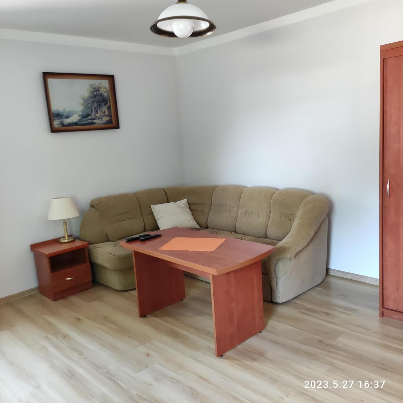 Apartament z 1 sypialnią. Featuring a private entrance, this apartment comprises 1 living room, 1 separate bedroom and 1 bathroom with a shower. Meals can be prepared in the kitchenette, which comes with a stovetop, a refrigerator, kitchenware and an electric kettle. Boasting an outdoor dining area, this apartment also provides a wardrobe, a sofa and a flat-screen TV. The unit offers 2 beds. Apartament - 4 osobowy. Powierzchnia pokoju ok.: 45 mkw.