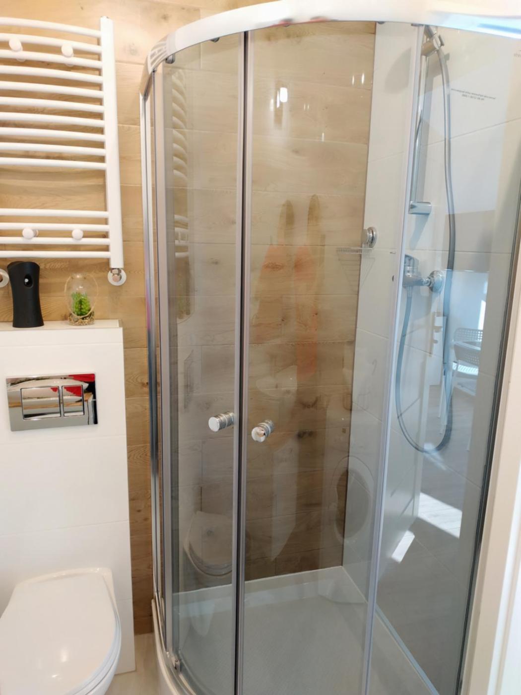 Apartament z prysznicem. Jest to apartament z oddzielnym wejściem. Mieści on aneks kuchenny, sypialnię oraz łazienkę z prysznicem i suszarką do włosów. W dobrze wyposażonym aneksie kuchennym zapewniono płytę kuchenną, lodówkę i przybory kuchenne. Apartament wyposażony jest w pralkę, zestaw do parzenia kawy i herbaty oraz telewizor z płaskim ekranem i dostępem do serwisów streamingowych. Dla Gości przygotowano czekoladę. W opcji zakwaterowania znajduje się 1 łóżko. Apartament - 2 osobowy. Powierzchnia pokoju ok.: 15 mkw. ;