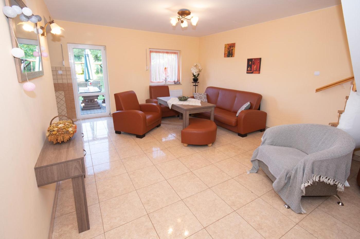 Dom z 2 sypialniami. Boasting a private entrance, this holiday home features 1 living room, 2 separate bedrooms and 2 bathrooms with a walk-in shower and a bath or a shower. Guests will find a stovetop, a refrigerator, kitchenware and a microwave in the kitchen. The holiday home also comes with a barbecue. Featuring a terrace with garden views, this holiday home also features a tea and coffee maker and a flat-screen TV with cable channels. The unit has 6 beds. Dom wakacyjny - 6 osobowy. Powierzchnia pokoju ok.: 80 mkw. ;