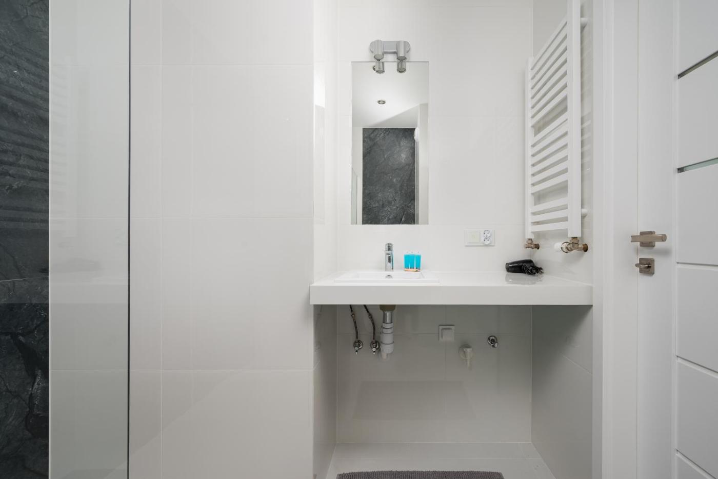 Apartament z 1 sypialnią. Featuring a private entrance, this air-conditioned apartment comprises 1 living room, 1 separate bedroom and 1 bathroom with a shower and a hairdryer. Meals can be prepared in the kitchenette, which comes with a stovetop, a refrigerator, a dishwasher and kitchenware. Boasting a balcony with city views, this apartment also provides a tea and coffee maker and a flat-screen TV. The unit offers 2 beds. Apartament - 4 osobowy. Powierzchnia pokoju ok.: 30 mkw.